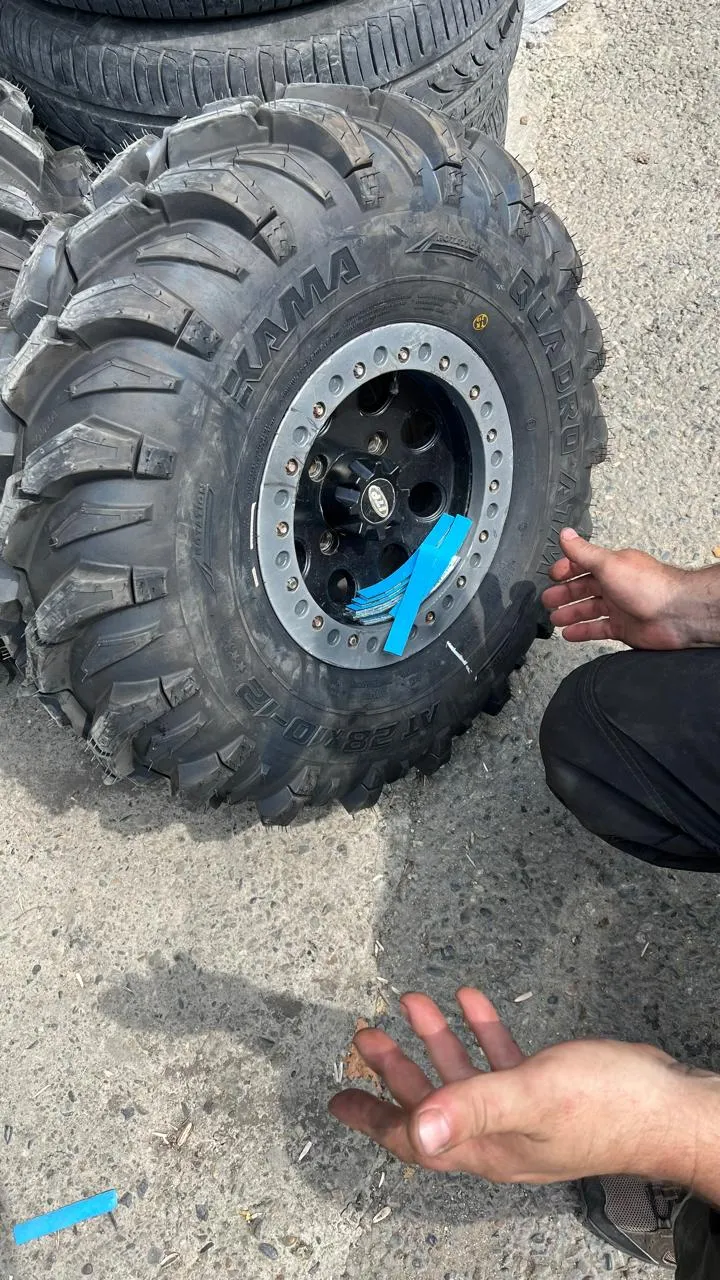 Маркировка квадрошин немногим отличается от маркировки других автошин. Здесь обозначение типоразмера шины представлено в дюймах (английская система измерений), где первое число обозначает высоту покрышки, второе – ее ширину, третье – внутренний посадочный размер. Привычная метрическая система также указывается на шинах.
